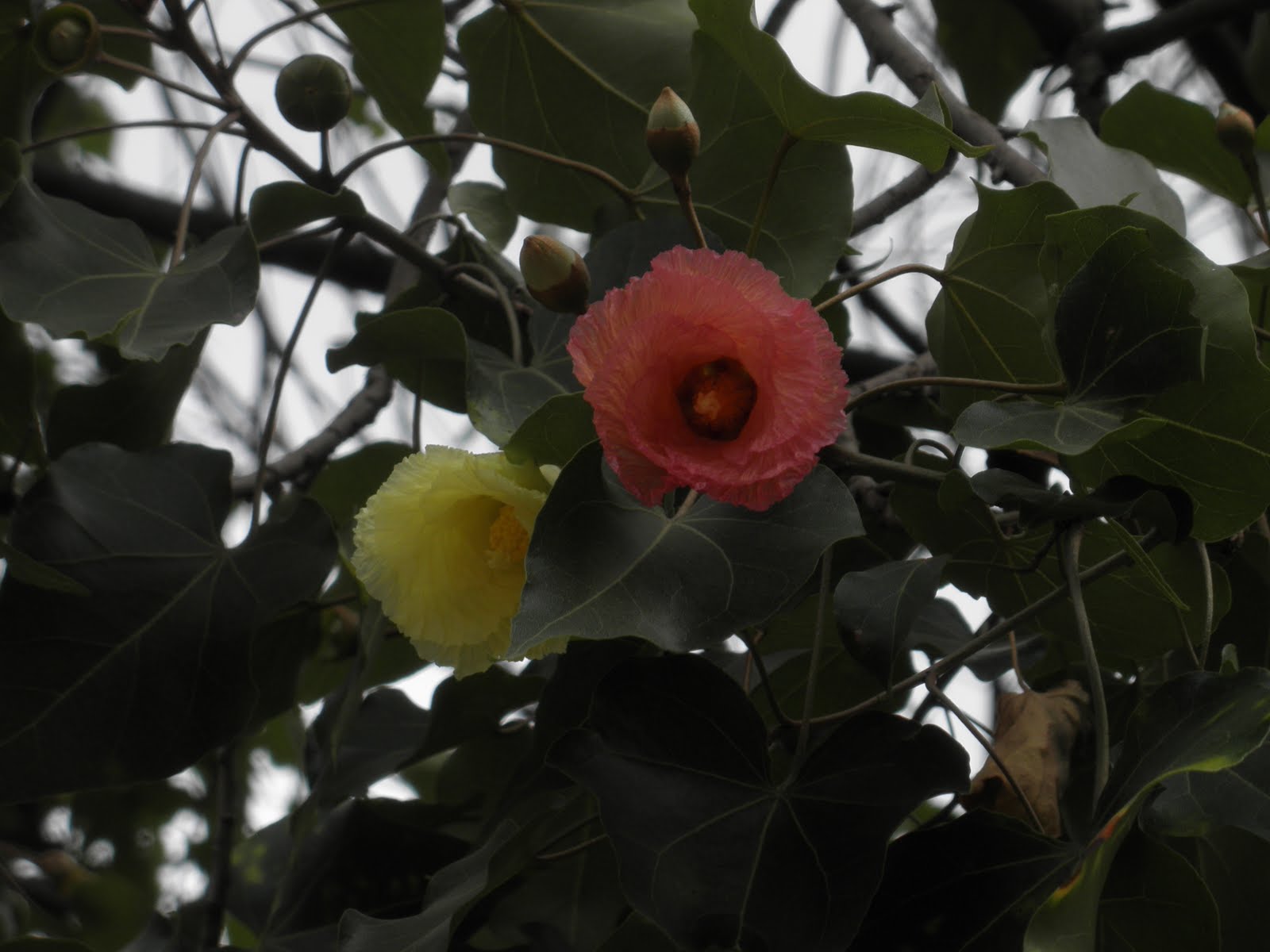 A fairly common tree, the Thespesia populnea or Indian Tulip tree is in full bloom at this time of the tree. Most parts of the tree are medicinal.