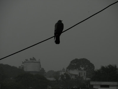 It has been raining rather heavily the last few days. And through all the rain some days back, this pigeon sat tight on a wire. It was very strange, it could have easily flown to shelter, but it decided to brave the water and winds instead
