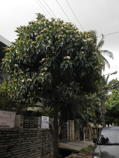 I chanced upon this interesting tree while waiting at the railway booking office. It is quite a common site - the interesting bit about this tree is that it's branches are perfectly horizontal, unlike those of most other trees that grow upward.