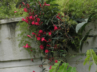 In our absence the heliconia rostrata has grown unhindered, as have the weeds all around. All at the expense of the garden lettuce which remains at the same height it was three years back.