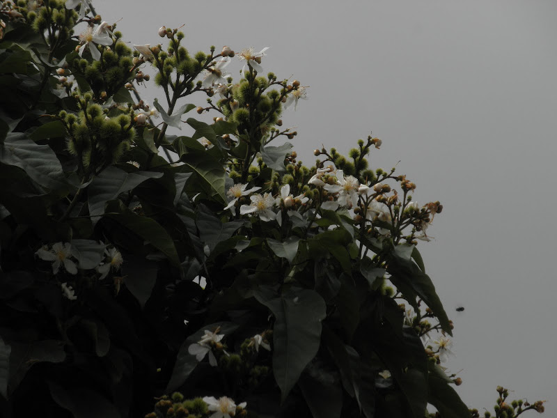 Take a closer look at the flowers if you come across this tree - they are quite pretty with 5 green sepals and 5 delicate white petals, with many yellow stamen