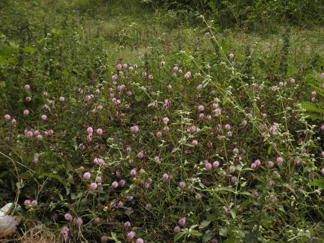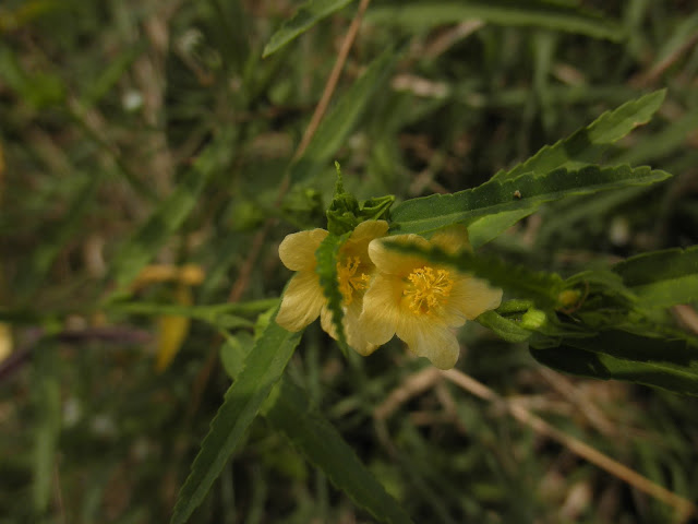 Beautiful wild flowers- This one below is the common sida (sida acuta). Its leaves were long and slender and it is said to attract butterflies.