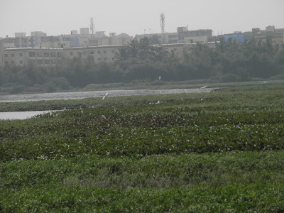 The Madiwala tank is the second biggest tank in Bangalore and is frequented, amongst others, by the city's birders for the migratory spot billed pelicans that visit in large numbers. We were lucky to see some of them swimming along the waters. There were several other birds along one side. Lots of wildflowers and many butterflies as well.