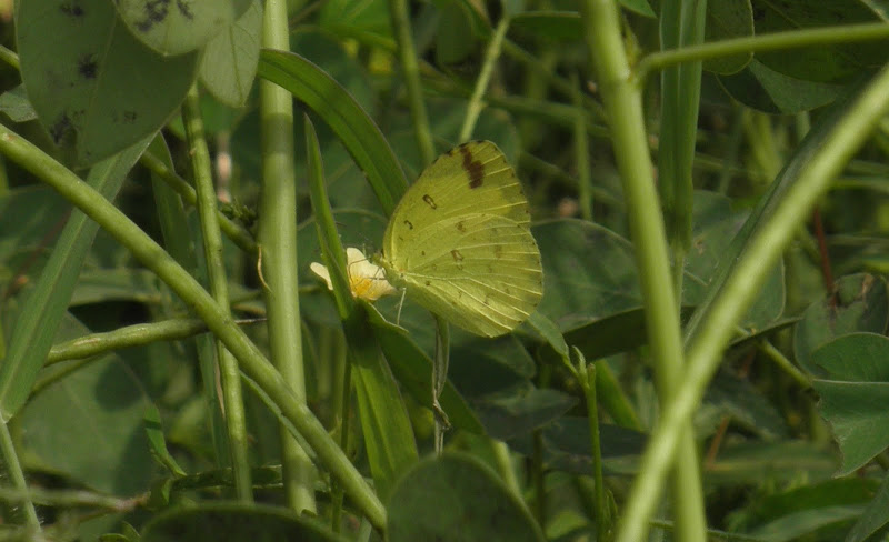 Here is a Grass Yellow (can you tell if it is a three spotted or one spotted kind?)