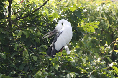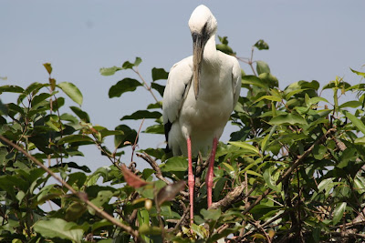 The first bird we came across at the sanctuary was the Asian open bill stork. It has these really curious 'mandibles' that are arched and hence always looks open, even when closed! The legs were a beautiful pinkish red and the wings black and white. It was present in large numbers, according to Salim Ali's book it spends the summers in North India and the winters in the South and in Sri Lanka.