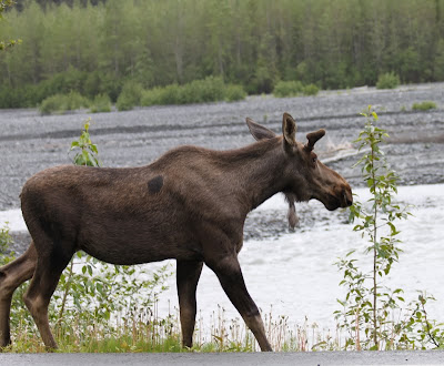 We were a bit sad that we had not seen the moose, the quintessential Alaskan animal. But we were soon to get lucky - there it was, by the road to seward, holding up traffic!